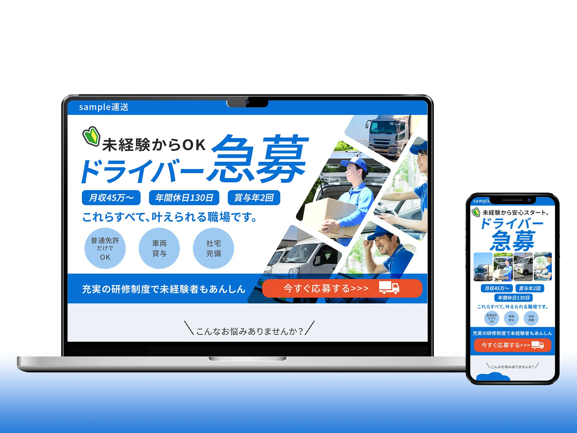 ドライバー急募、未経験層の応募を最大化LP(FV_sample)